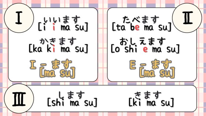 ※ただし、「起きます」「います」「かります」「見ます」は例外として伝えておきましょう。
