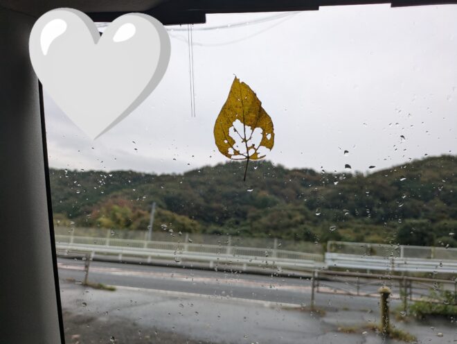 きいろい葉(は)っぱが車(くるま)のまどに*くっついていました。